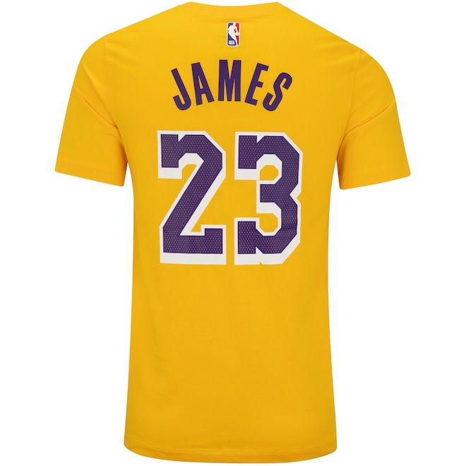 A camiseta Los Angeles Lakers masculina é de mangas curtas, com gola careca e tira interna em tecido que ajuda a diminuir o atrito de contato com a costura.