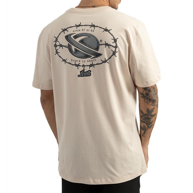 Camiseta Lost feita em meia malha 30.1, estampa no peito e costas e etiquetas personalizadas.