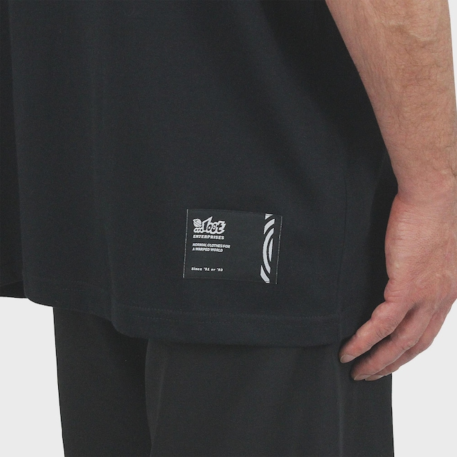 A Camiseta Lost BoxFit Mini Preta é produzida em malhão 100% Algodão. O tradicional logo Lost bordado no peito e etiqueta personalizada nas costas, gola reforçada em ribana de 4cm, modelagem Oversized