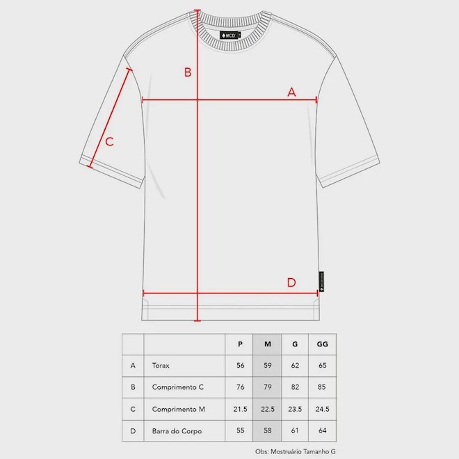 · Estampa frontal localizada no peito.