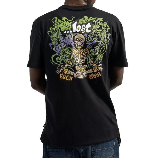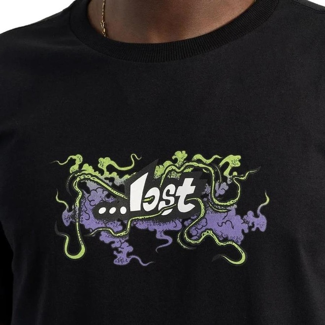 Camiseta Lost feita em meia malha 30.1, estampa na parte frontal e costas e etiquetas personalizadas.