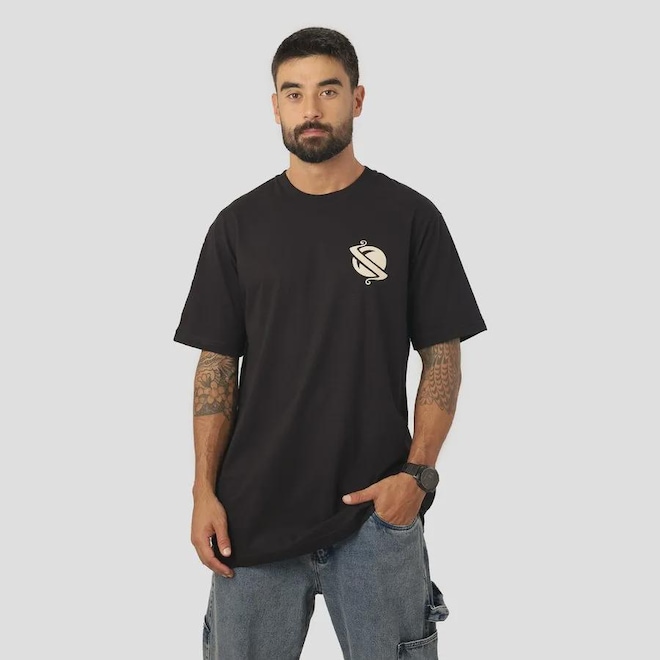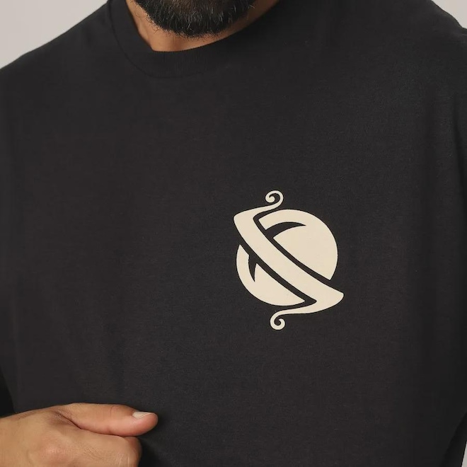 · Estampa frontal Saturno Psycho no peito lateral.