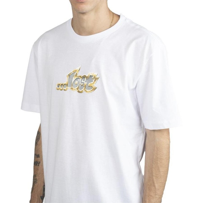 Camiseta Lost em modelagem regular, meia malha 30.1, silk frontal e etiquetas personalizadas.