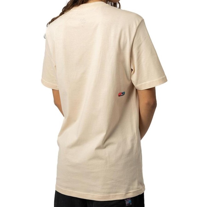 Camiseta Lost feita em meia malha penteada 30.1, modelagem regular, estampa localizada no peito, estampas em tinta neo que reagem à luz negra e etiquetas personalizadas.