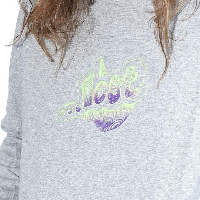 Camiseta LOST manga longa com malha penteada fio 30.1, estampa frontal e modelagem regular.