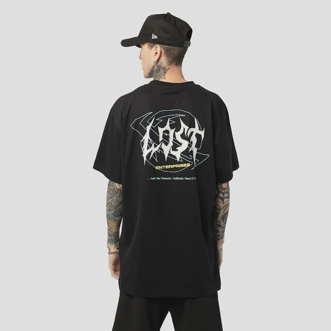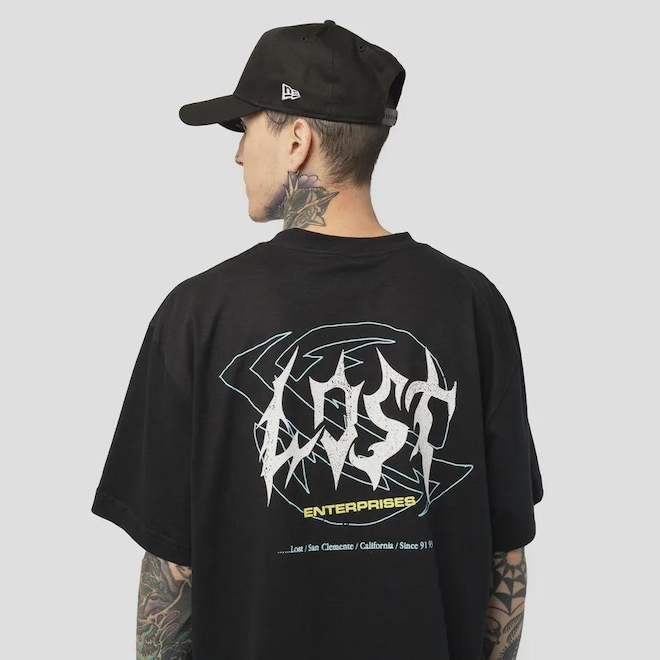 Desde 1991, quando a LOST estava sendo idealizada, a música tem um papel extremamente importante, produtos com referências musicais são marca registrada da LOST, essa peita é um exemplo disso. Inspirada na estética do Rock, ela une a tipografia utilizada por grandes bandas icônicas às cores vibrantes e elementos do movimento. Uma peça que combina desde eventos noturnos, shows e até um churras com a galera.