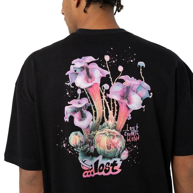 Camiseta Lost feita em malhão mais pesado, estampa na parte de trás e etiquetas personalizadas.