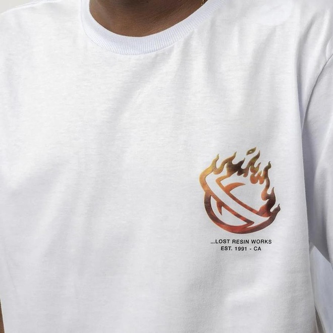 Camiseta Lost básica, meia malha 30.1, silk frontal, modelagem regular e etiquetas personalizadas.