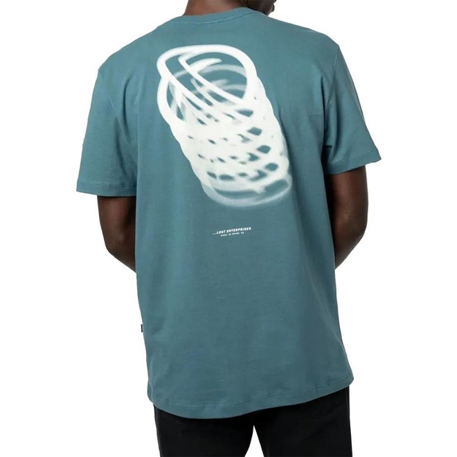 Camiseta Lost feita em meia malha 30.1, estampa no peito e costas e etiquetas personalizadas.