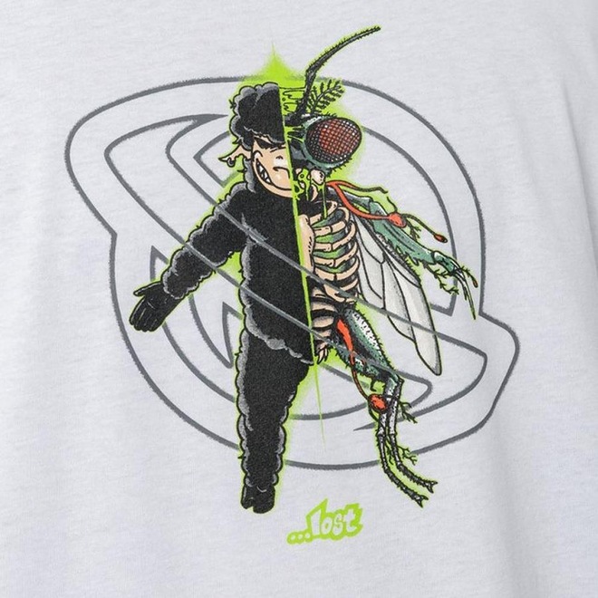 Camiseta Lost feita em meia malha penteada 30.1, estampa frontal e etiquetas personalizadas.