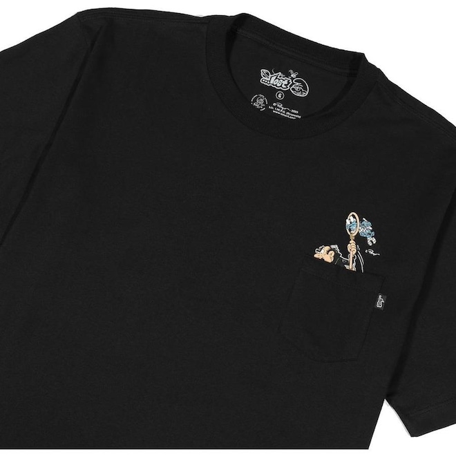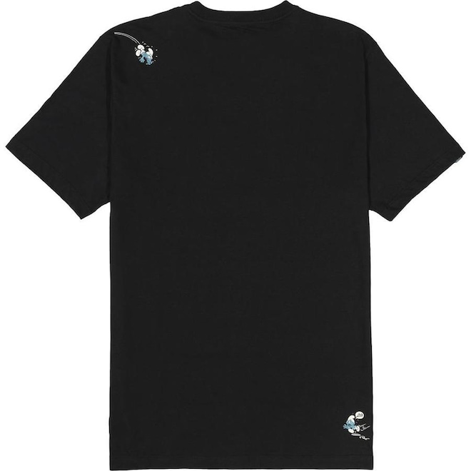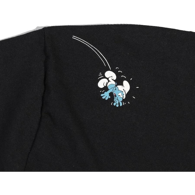 Camiseta Lost em collab com Os Smurfs, que conta com meia malha penteada 30/1, estampa frontal e trassira dos Smurfs, modelagem regular e etiquetas personalizadas da collab.