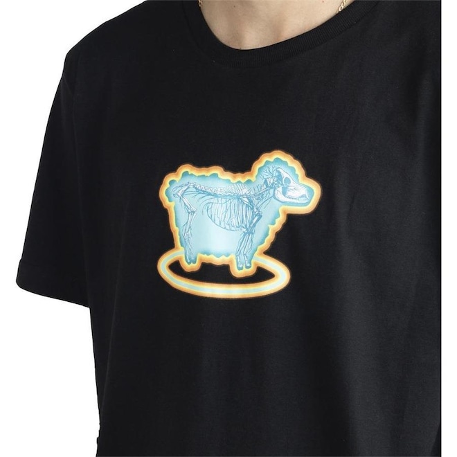 Camiseta Lost em modelagem regular, meia malha 30.1, silk frontal e etiquetas personalizadas.