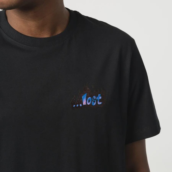 · Estampa frontal Lost fogo localizada no peito lateral.
