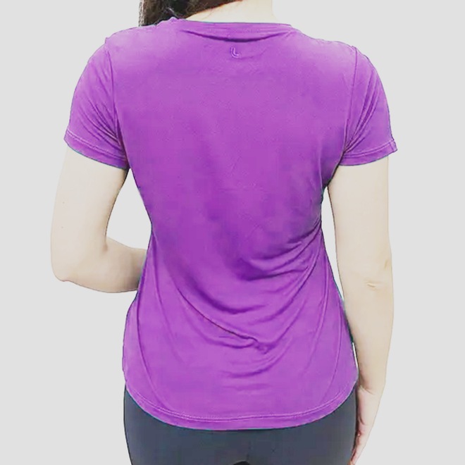 Camiseta confeccionada em tecido leve de crepe. Possui gola redonda, mangas curtas, e modelagem que se ajusta ao corpo. Possui proteção UV 50+ contra radiações solares. Proporciona toque macio, respirabilidade e conforto, além de maior qualidade e durabilidade.