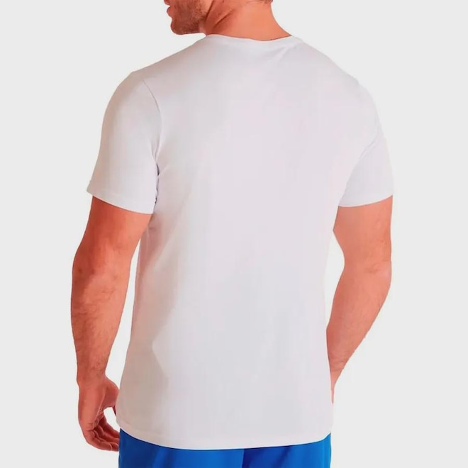 Liberdade de Movimento: Com modelagem reta, manga curta e decote redondo, a peça foi desenvolvida para a prática de atividades esportivas, garantindo maior amplitude e liberdade de movimento.
