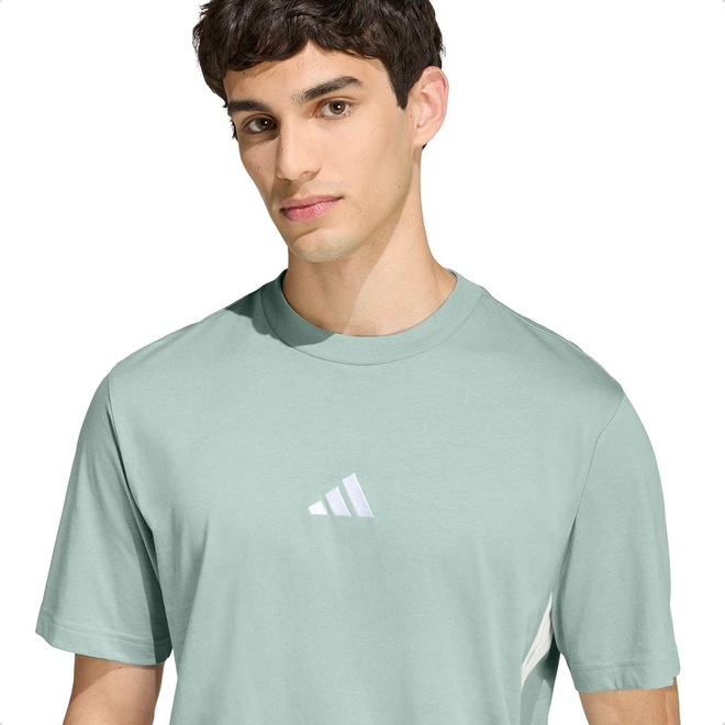Esta camiseta adidas é uma peça básica e versátil que combina com tudo. Ela é confeccionada em malha macia de algodão para conforto no dia a dia. As Três Listras aplicadas nos ombros e o logo das Três Barras bordado na frente homenageiam o legado da adidas.