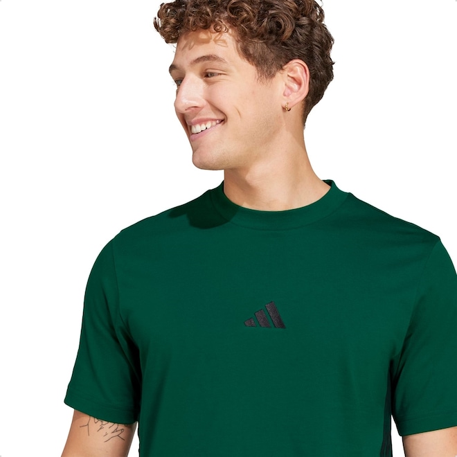 Esta camiseta adidas é uma peça básica e versátil que combina com tudo. Ela é confeccionada em malha macia de algodão para conforto no dia a dia. As Três Listras aplicadas nos ombros e o logo das Três Barras bordado na frente homenageiam o legado da adidas.