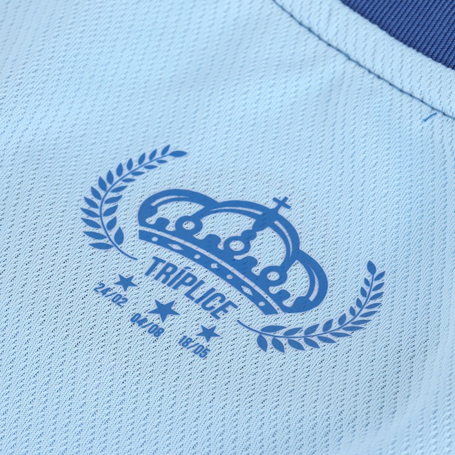 Apresenta listras com o icônico escudo em destaque e estampa personalizada nas costas que evidencia suas conquistas, eternizando com chave de ouro as premiações da Tríplice Coroa.