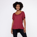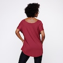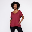 Blusa larguinha, mais comprida na parte de trás, tapando o bumbum, gola redonda e manga curta, com bolsinho na parte da frente e delicada plaquinha de metal Orbis.