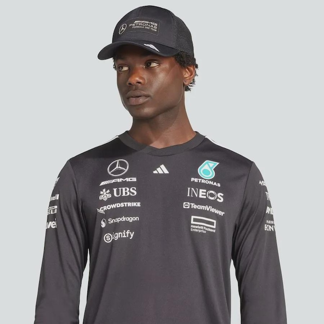 Leve as pistas de corrida para casa com esta camisa elegante da equipe de Fórmula 1 da Mercedes - AMG Petronas da adidas Motorsports. Com mangas longas e tecido macio de interlock, esta camiseta mantém você refrescado e confortável, seja assistindo à corrida nas arquibancadas ou em sua sala de estar. Os logos destacados da equipe e dos patrocinadores na frente deixam claro para quem você torce, enquanto o tecido AEROREADY remove o suor da sua pele. Este produto é 100% feito com materiais reciclados. Ao escolher o reciclado, podemos reutilizar materiais já criados, o que ajuda a reduzir o desperdício e a nossa dependência de recursos finitos, além de reduzir a pegada dos produtos que fabricamos.