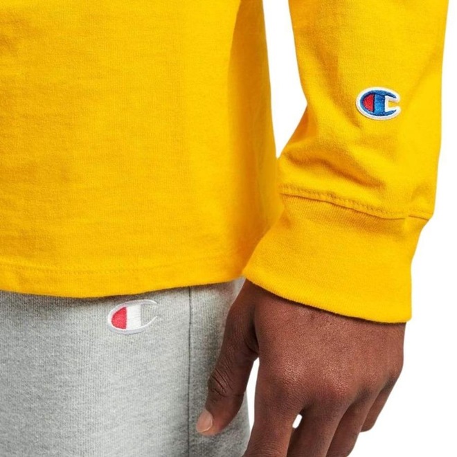 A camiseta masculina Champion é elaborada em uma mistura de algodão macio e resistente de 150g que proporciona conforto e durabilidade. Apresenta gola canelada e costuras duplas, sendo oferecida em diversas cores e modelos. O icônico logotipo C marca a manga, o que confere ainda mais autenticidade ao visual. Combine com sua melhor jaqueta Champion para obter um look único.