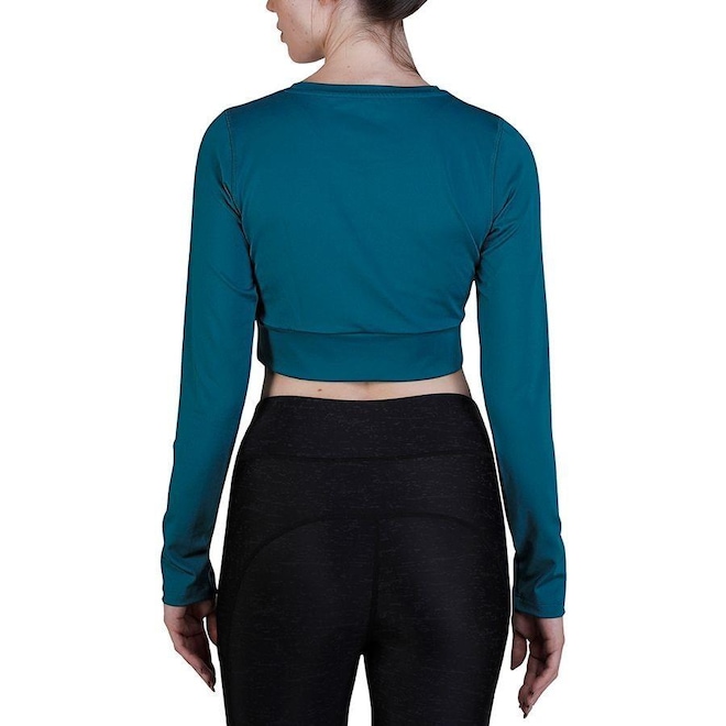 Blusa manga longa confeccionada em malha de média compressão e modelagem crooped. Logo não refletivo.
