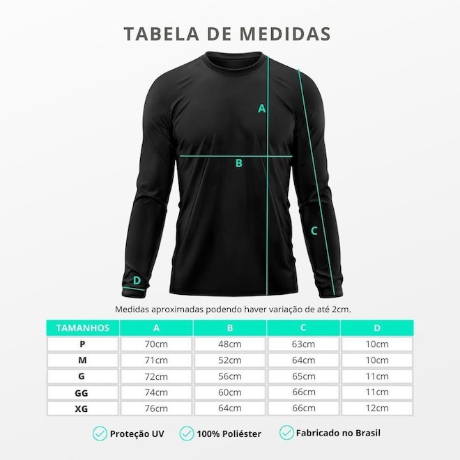 Confeccionada com material leve e confortável para garantir flexibilidade nos movimentos. A camiseta se adapta perfeitamente ao corpo podendo ser usada como segunda pele.