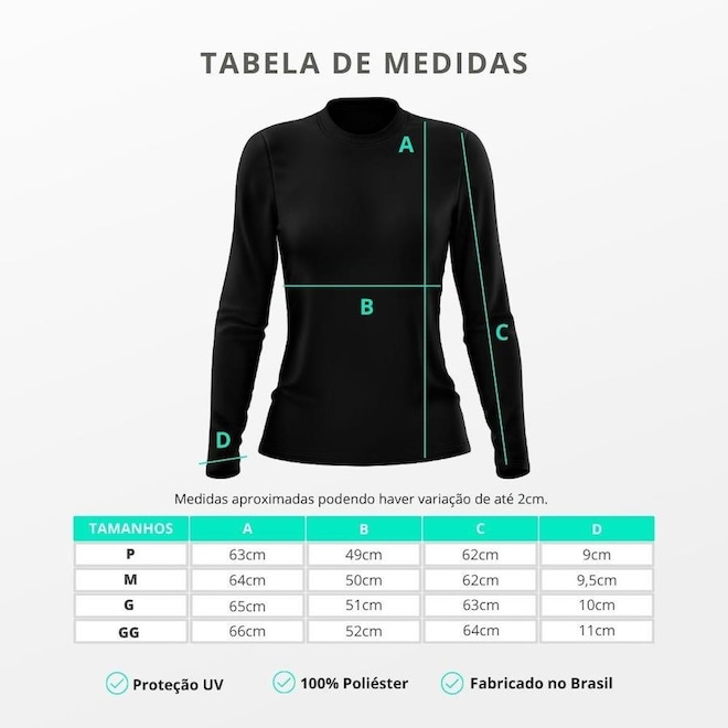 CAMISETA FEMININA MANGA LONGA SEGUNDA PELE TÉRMICA PROTEÇÃO SOLAR UV 50