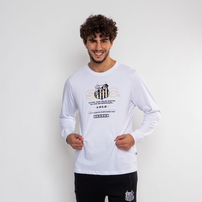 Mostre sua paixão pelo Santos FC em qualquer estação com a Camiseta Manga Longa Santos Oficial. Confeccionada em 100% algodão, ela oferece conforto, maciez e respirabilidade, ideal para os dias mais frescos. A estampa silk com o lema "Pra Cima Deles" transmite toda a energia e o espírito vencedor do Santos, tornando essa camiseta uma escolha perfeita para torcedores que não perdem a chance de apoiar o time com estilo.