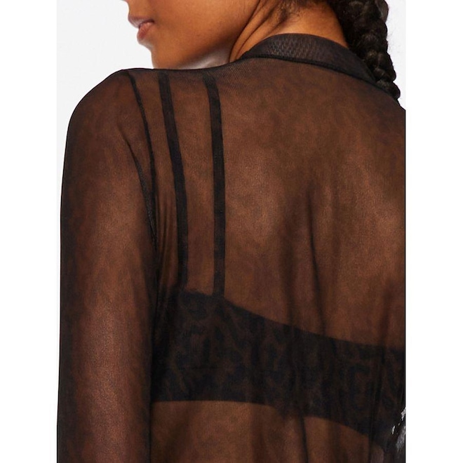 Camiseta manga longa de Tule em estampa Animal Print de Onça, gola alta e dedeira. Referência: 4079 Coleção: Glam Tamanhos: P, M, G e GG Tecido: Tule Super Leve TULE SUPER LEVE 83% Poliamida 17% Elastano Tule leve com super caimento, elasticidade e fluidez, com brilho que valoriza as cores Indicação de uso: esportes de baixo impacto e composição de looks athleisure para o dia a dia