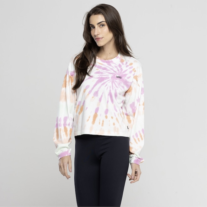Essa Camisa Manga Longa Feminina no estilo tie-dye realça qualquer look, possui a maciez da malha de algodão e gola canelada com tira interna em tecido que ajuda a diminuir o desconforto do atrito da costura.
