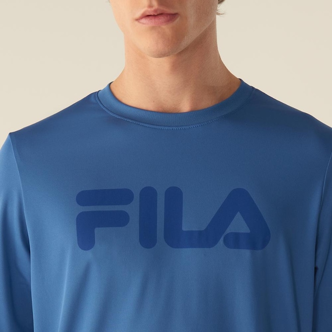 Camisa masculina de manga longa produzida em malha de poliéster com tecnologia POLYGIENE, combatendo a proliferação de bactérias e mantendo a peça livre de odores causados pela transpiração. Com UV PROTECTION FPS 50+ e tecnologia FLOW, garante respirabilidade e evaporação rápida do suor. A modelagem regular e a gola em ribana com cobre gola aplicada oferecem um ajuste confortável para treinos de baixa e média intensidade.