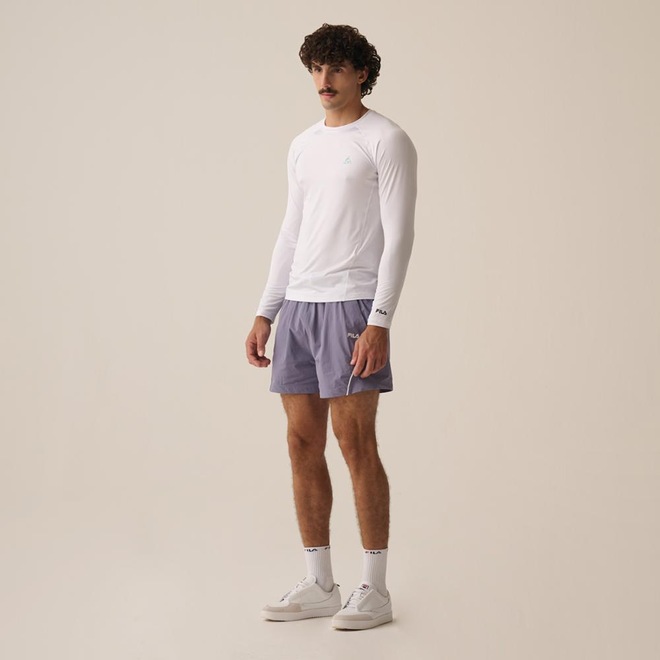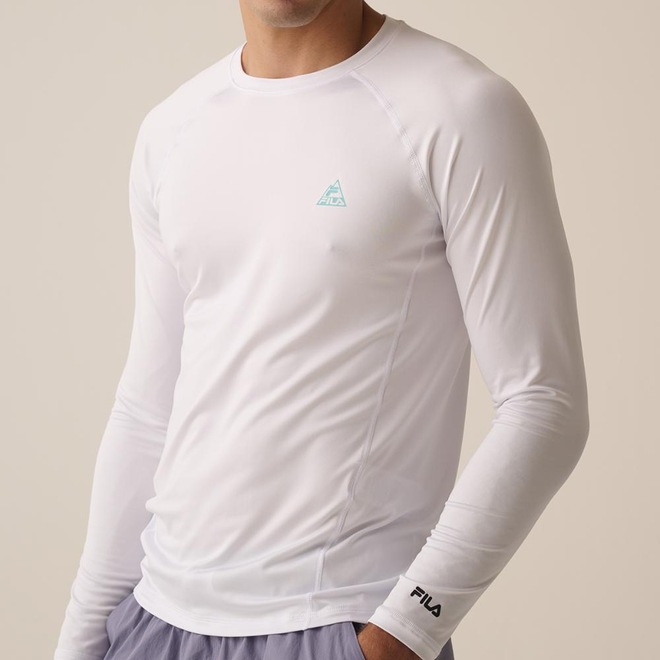 - Sobre o produto Camiseta masculina confeccionada em malha de poliéster com elastano. Modelagem slim fit, ajustada ao corpo, com manga longa raglan e gola careca. Seu tecido contém 2 tecnologias: FLOW, que oferece secagem rápida e mantém o corpo na temperatura ideal para a prática esportiva, e UV PROTECTION, que fornece proteção solar FPS 50+ dos raios UVA e UVB. Possui laterais deslocadas para frente, que proporcionam maior conforto e diminui o atrito com a pele, logo Fila Trek em termo aplicado na parte frontal esquerda superior e logo Fila Letter também em termo aplicado no punho da manga esquerda.- ref: M17LYH