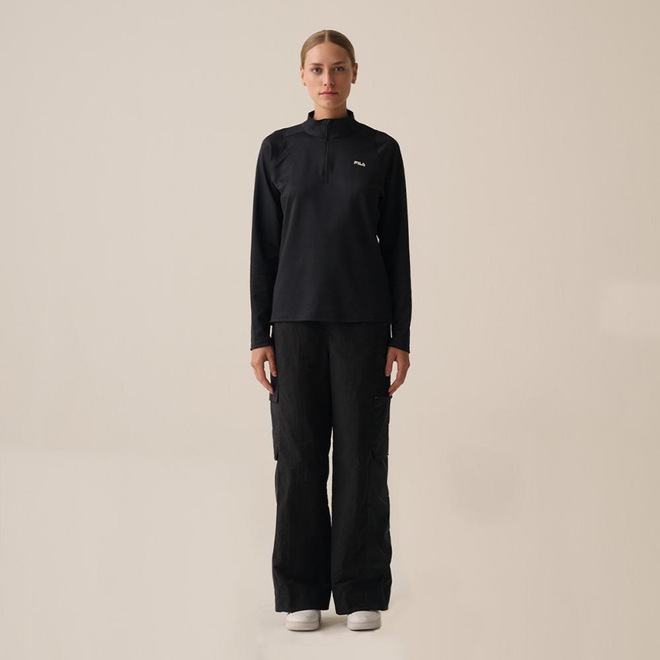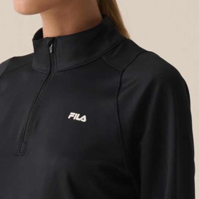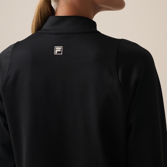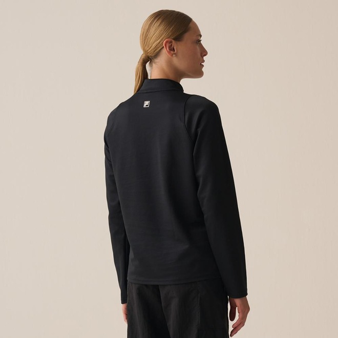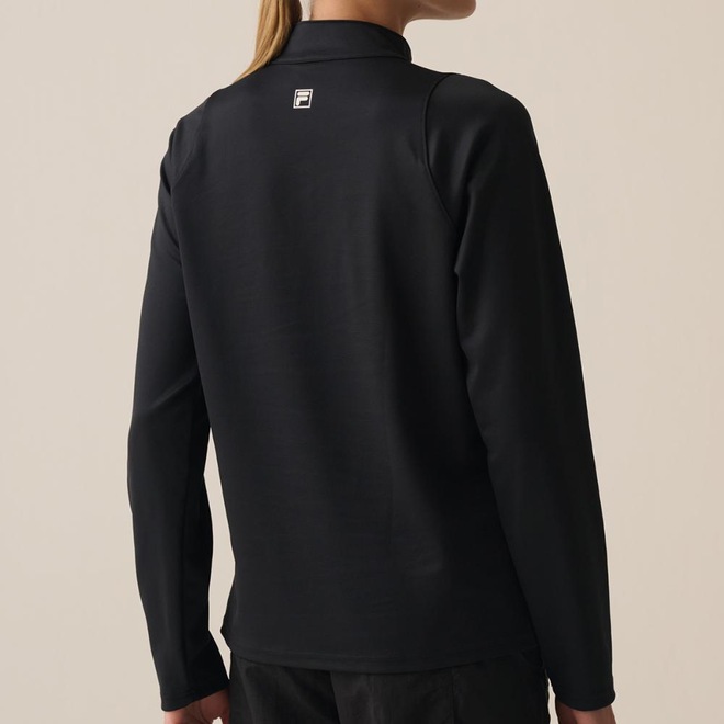 Camiseta térmica feminina confeccionada em malha elastizada de poliéster. Modelagem slim fit, ajustada ao corpo, com manga longa raglan e gola alta. Seu tecido contém a tecnologia FLOW, que proporciona rápida secagem, mantendo o corpo na temperatura ideal para a prática esportiva. Possui abertura frontal em meio zíper, logo Fila Letter aplicado na parte frontal esquerda e logo F-Box monocolor aplicado na manga esquerda próximo ao punho.ref: M17LYS