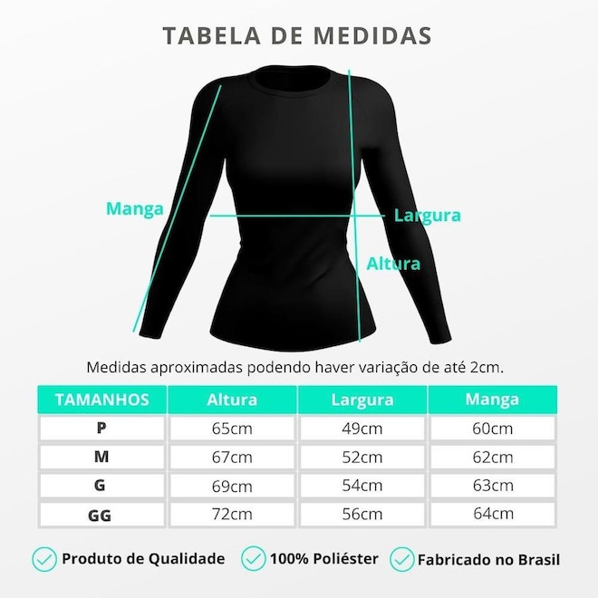 Tamanho GG ? Altura: 72 cm, Largura: 56 cm, Manga: 64 cm.