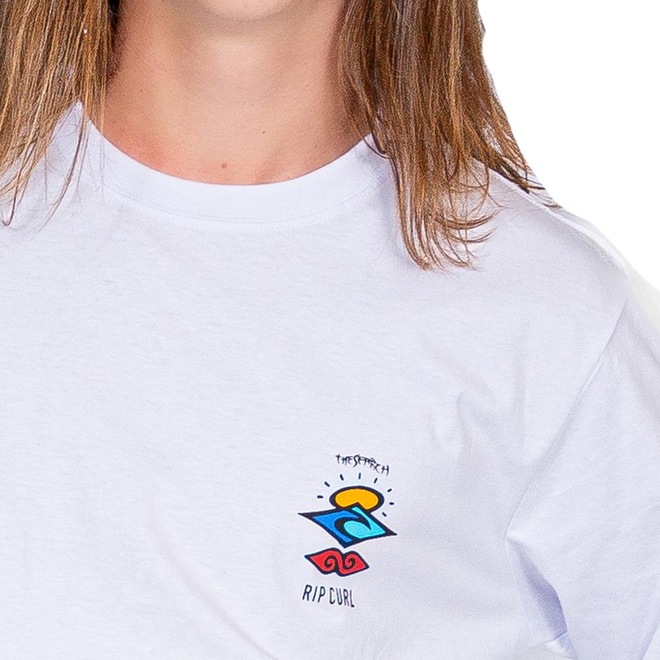 Camiseta Rip Curl Manga Longa feita em modelagem regular fit, meia malha 26.1 penteada e estampa frente e costas.