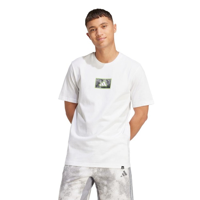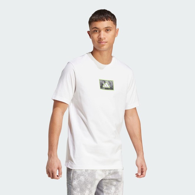 Dê um toque de camuflagem ao seu estilo cotidiano com esta camiseta estampada da adidas. Ele é feito de um tecido macio de algodão malha simples que mantém você confortável desde o momento em que o veste. O logotipo inspirado em camuflagem no peito faz uma declaração ousada.