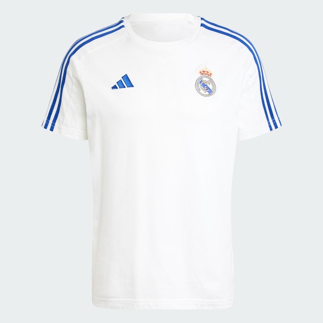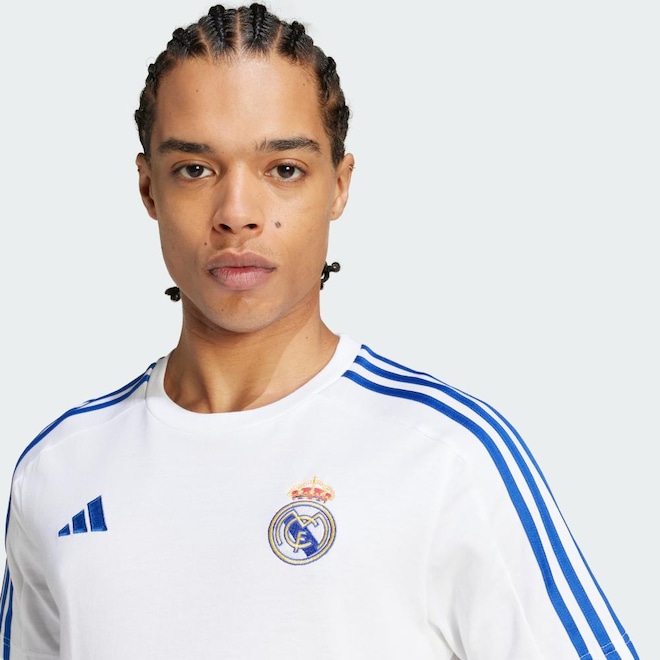 Um item básico para qualquer torcedor obstinado do Real Madrid, esta camiseta adidas permite que você represente seu clube 24 horas por dia, 7 dias por semana. O tecido macio da camiseta mantém você confortável, seja torcendo para Los Blancos no Bernabéu ou assistindo em casa. O escudo do time bordado mostra orgulhosamente sua paixão pela realeza do futebol.