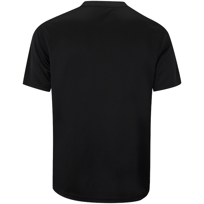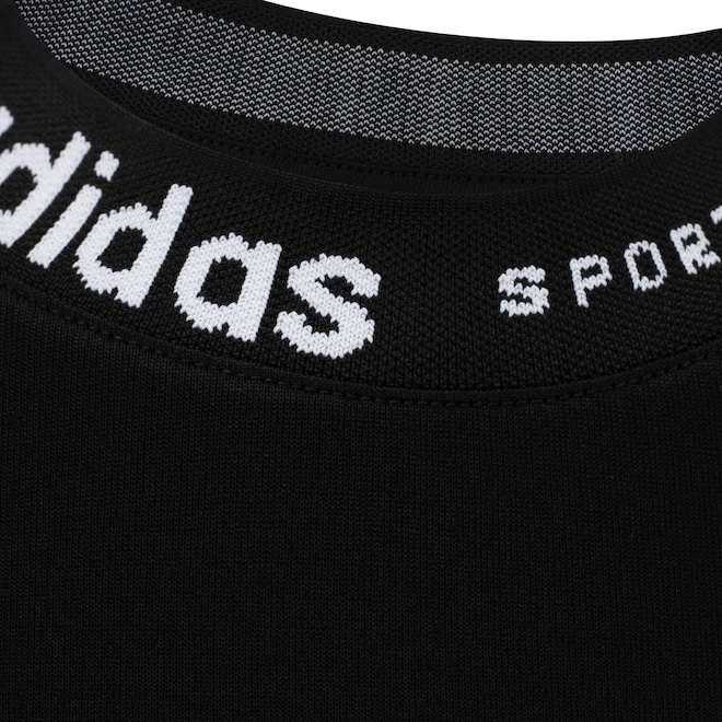 A gola é canelada e tem tira interna, sua manga é curta e tem modelagem Loose Fit.
