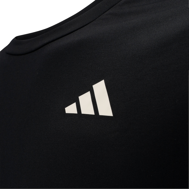 Na parte interna da gola, a tira em tecido ajuda a diminuir o desconforto do atrito da costura. Já a estampa personalizada valoriza o visual esportivo com a simplificação do logo sem a escrita “adidas” com as três listras que formam a montanha.