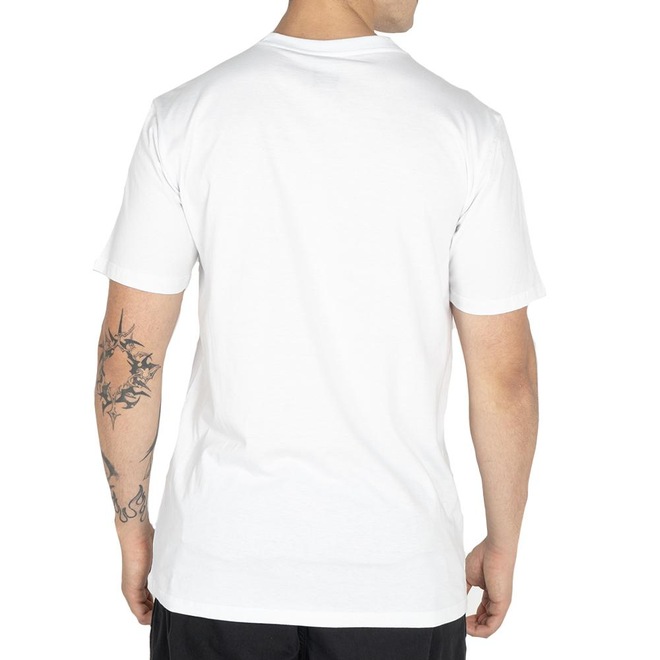 Camiseta Dc Shoes feita em modelagem regular, meia malha 30.1, estampa frontal e etiquetas personalizadas.