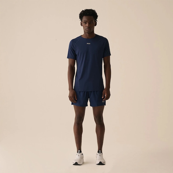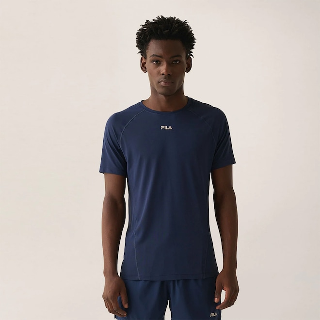 Camiseta masculina confeccionada em malha leve de poliamida, com textura sarjada. Modelagem regular com manga curta raglan e gola careca, indicada para a prática de exercícios. Seu tecido contém as tecnologias BIOTECH, que controla a proliferação de bactérias; e a FLOW, que aumenta a hidrofilidade, oferece secagem rápida e mantém o corpo na temperatura ideal para a prática esportiva. Além disso, possui costuras Flat que não causam atrito com o corpo.