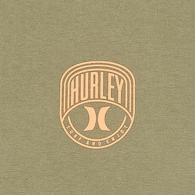 Camiseta Hurley feita em meia malha 30.1, gola rebatida, estampa localizada base d'agua e etiqueta clips ONE&ONLY na barra.