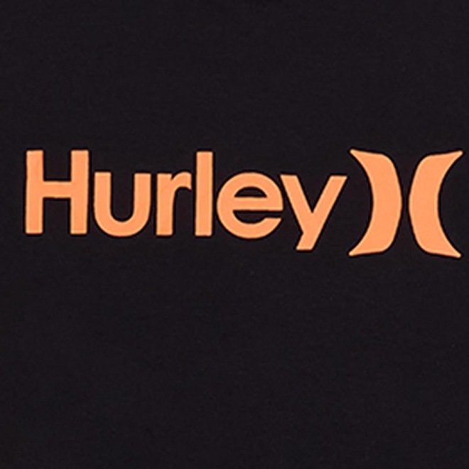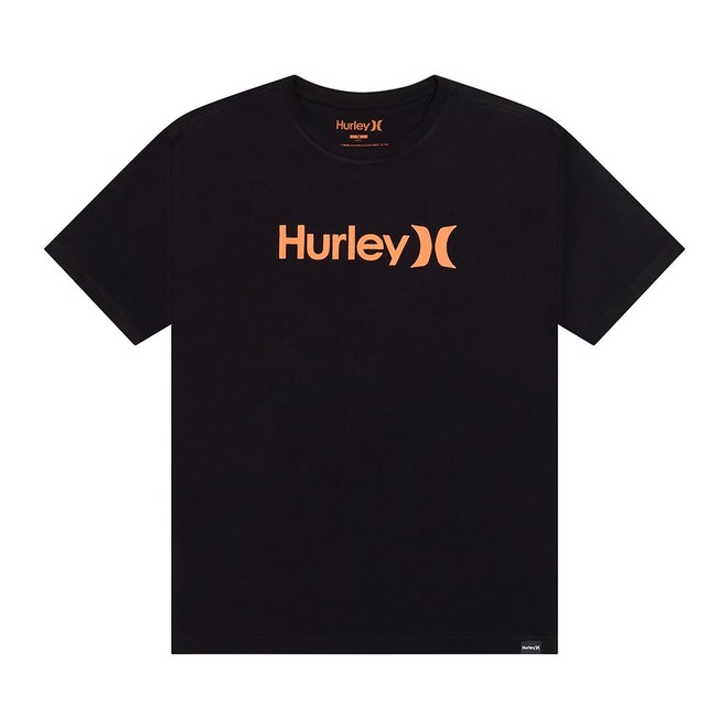 Camiseta Hurley feita em meia malha 30.1, gola rebatida, estampa localizada base d'agua e etiqueta clips ONE&ONLY na barra.