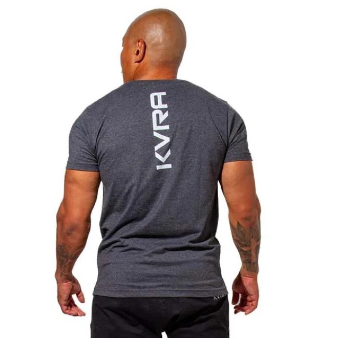 Na parte de trás da camiseta, está o logo da marca KVRA, que é reconhecido por seus produtos de alta qualidade e design inovador para o mundo do esporte. O logo é discreto e elegante, complementando a estampa frontal com estilo.
