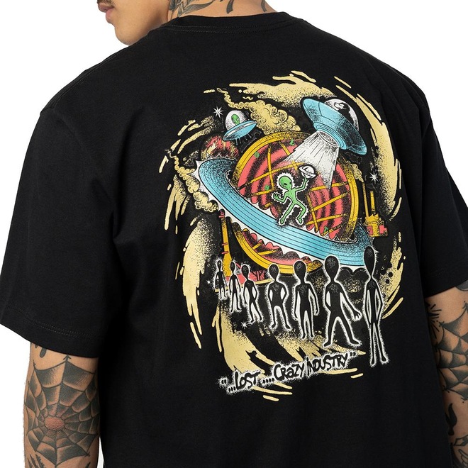 Camiseta Lost feita em meia malha pentaada 30.1, estampa no peito e costas e etiquetas personalizadas.