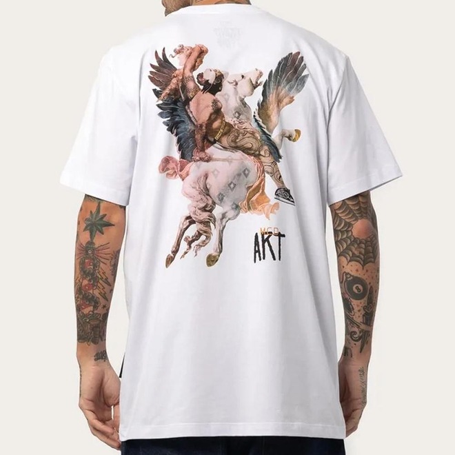 Camiseta MCD feita em malha penteada 30.1, estampa frontal e costas e etiquetas personalizadas.
