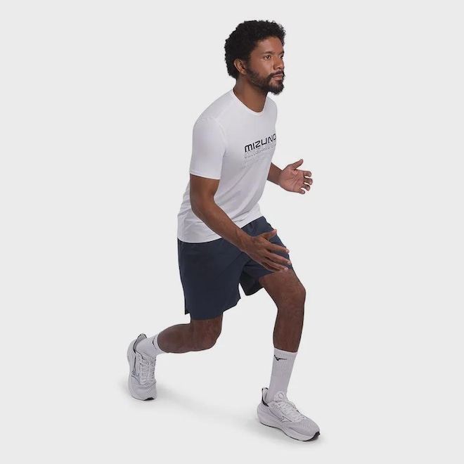 Corra mais longe com a Camiseta de Corrida Masculina Mizuno Focus Stamp. Essa camiseta vai te manter fresco mesmo nas corridas mais pesadas, já que seu tecido texturizado em poliamida e elastano absorve o suor enquanto refresca a peça. Essa linha conta ainda com estampas exclusivas em cores vibrantes e logo com tecnologia refletiva como elementos de destaque.