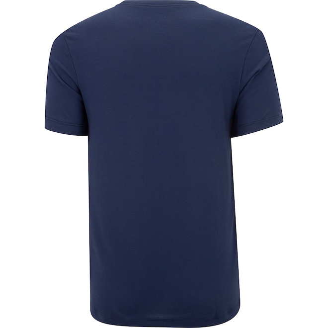 Conta ainda com mangas curtas e sua gola é careca com tira interna.