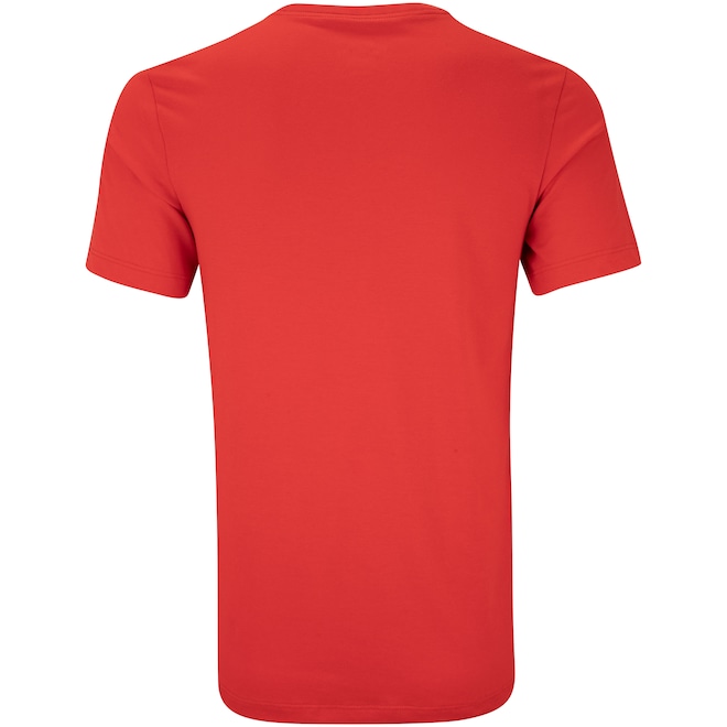 Conta ainda com mangas curtas e sua gola é careca com tira interna.